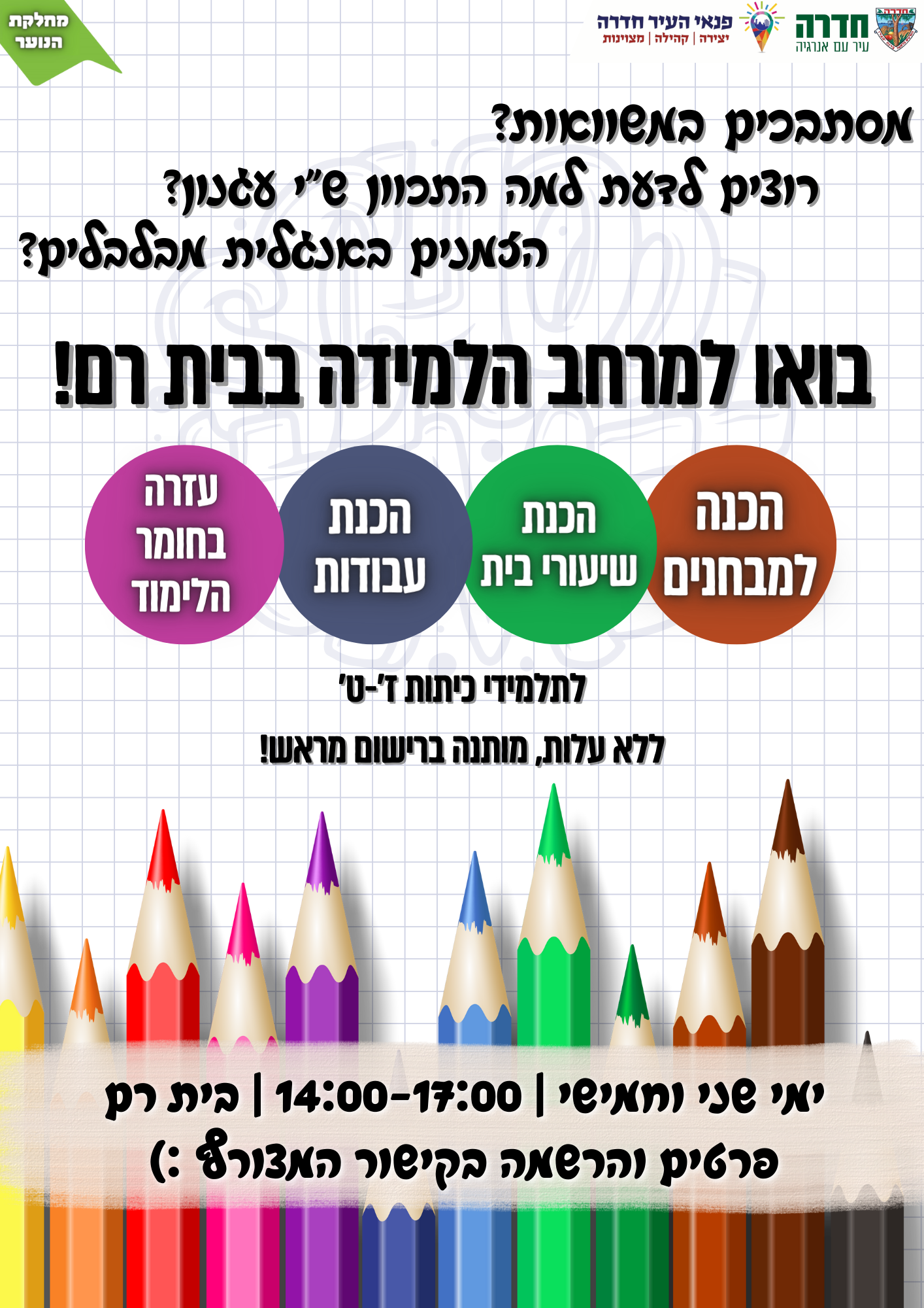 ימי שני וחמישי משעה 14:00 עד 17:00