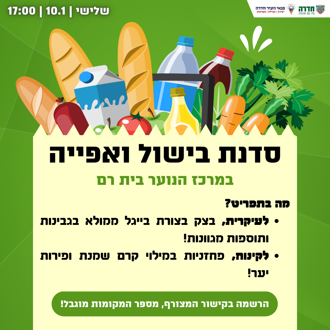 לצערנו נגמרו המקומות לסדנת הבישול הקרובה!